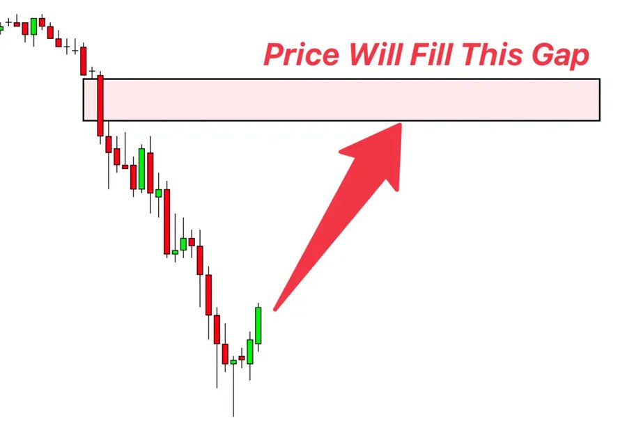 تعمل الأسواق المالية مثل الكائنات الحية وتسعى إلى التوازن والكفاءة. عندما تتشكل منطقة تداول فارغة على الرسم البياني للسعر، فإن السوق ينظر إليها على أنها حالة غير مألوفة ويميل إلى تصحيحها. ويحدث هذا التصحيح عندما يتحرك السعر نحو فجوة القيمة العادلة لسد الفجوة السعرية، كما لو أن قوة غير مرئية تسحب السعر نحوها.