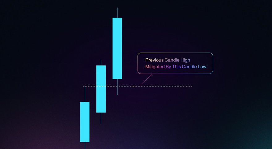 المسافة بين الذيل (العلوي أو السفلي) للشمعة الأولى والثالثة تسمى نطاق FVG.