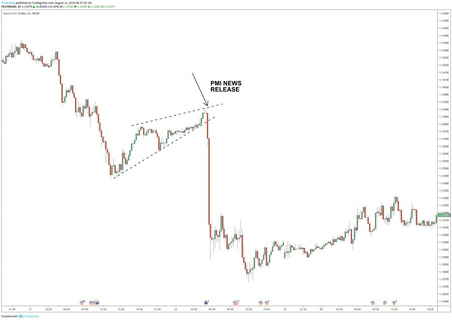 لنفترض أن مؤشر مديري المشتريات انخفض فجأة. يمكن أن يكون هذا علامة على ضعف الاقتصاد، ونتيجة لذلك، يؤثر على قيمة عملة ذلك البلد.